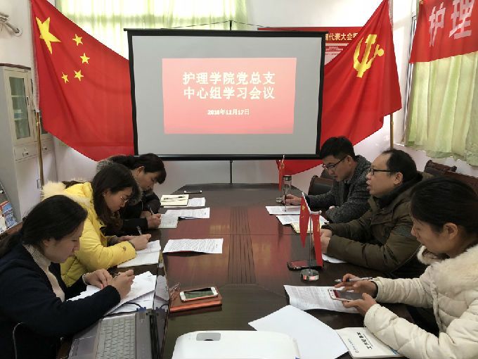 本网讯 2018年12月17日下午2点,护理学院党总支在103会议室开展了本月的中心组学习会,会议由党总支副书记胡宇主持,周鸣鸣副院长列席参加。