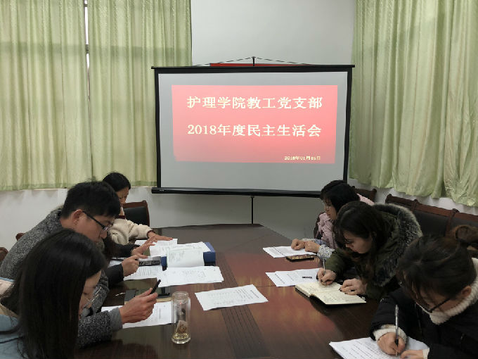 根据校党委发布《关于召开2018年基层党组织组织生活会和开展民主评议党员的通知》(锡太委字 [2018]21号)文件要求及护理学院党总支的工作部署,为了深入学习贯彻习近平新时代中国特色社会主义思想,推进“两学一做”学习教育常态化制度化,落实《中国共产党支部工作条例(试行)》,提升基层党组织组织力,严格党员教育管理监督。1月15日,护理学院教工党支部在5号楼106会议室,召开组织生活会和开展民主评议党员工作。会议由支部书记詹雪丽同志主持,支部全体党员参加。