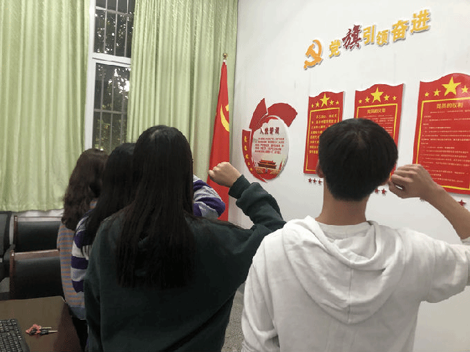10月17日下午,护理学院学生党支部开展“不忘初心,牢记使命”主题教育之重温入党誓词活动。“我志愿加入中国共产党……“,面对鲜红的党旗,党员们高举右拳,字字铿锵。全体党员在党旗下宣誓,接受心灵的净化和洗礼,牢记共产党员的初心和使命,政治责任、工作担当和光荣使命,引导党员自觉增强四个意识,坚定党员对党的事业奋斗终身的决心和愿望。