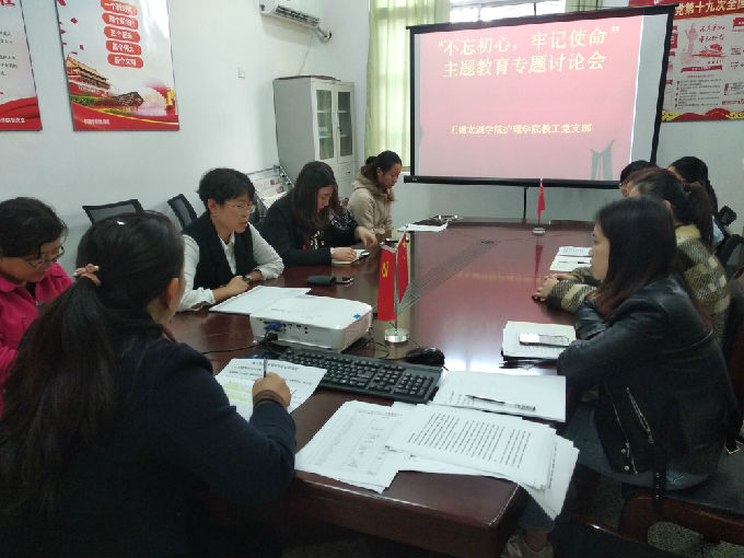 2019年11月7日下午2点,护理学院教工党支部在5号楼106会议室召开了“不忘初心,牢记使命”主题讨论会,护理学院全体教工党员参加会议,教工党支部书记詹雪丽主持会议。