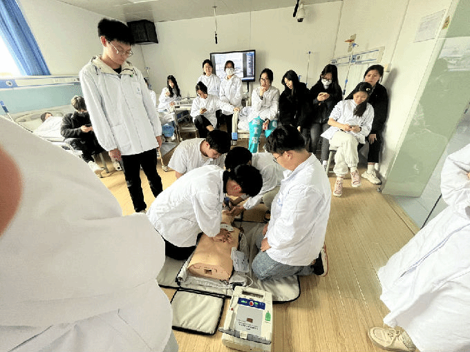 4月19日,武汉多位专家表示,值得重视的是,当前发生心源性猝死的患者中,中青年比例逐年上升,“三高”、肥胖、焦虑、熬夜等都是重要诱发因素。为此由班中6名同学组成了急救小组,分别作为队长、按压员、AED操作者兼按压员、记录员、开放气道员及通气员进行了心肺复苏急救演练。