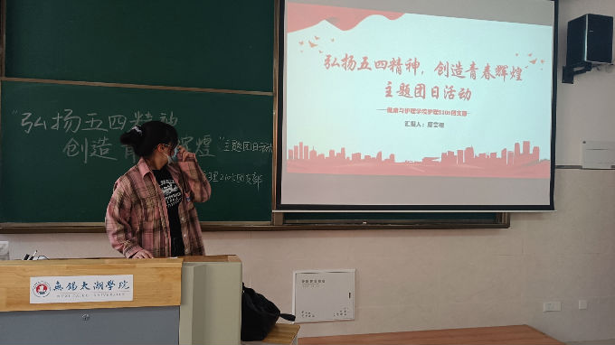为了突出我支部学子的精神面貌和不断奋进青少年力量,展现出我支部青年学子的爱国热情,彰显出中国的大国担当和中华民族自强不息的精神,护理2105团支部于5月12日在商科楼B204教室顺利开展了“弘扬五四精神,创造青春辉煌”主题团日活动。
