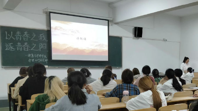 活动伊始,主持人通过PPT分别从“诗朗诵”、“分享展望,互赠美好”、“成语接龙,展示风采”三个板块向同学们介绍了五四青年节,并与同学们一起探讨青春这个多彩的话题。紧接着,主持人以同学为我们带来的诗朗诵为切入点,与同学们探讨青春的重要性和生命力。“美哉我少年中国,与天不老!壮哉我中国少年,与国无疆”,梁启超的《少年中国说》深深打动着我们,激起同学们的红色血脉;接下来通过观看视频,同学用书签写下自己眼中的青春,互赠书签,传递美好;最后主持人向大家介绍了五月里一个特殊的日子—五四青年节。五月是青年的五月,早在1919年5月4日,我国爆发了以青年群体为主的五四运动,使得中华民族为之一震,更让世界领略了中国青年的强大力量。