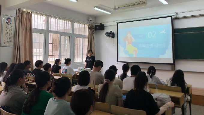 活动伊始,主持人为同学们解读了青春与青年责任的含义。青春是孕育着早春的神奇,展现着盛夏的热烈,暗藏着金秋的硕实,昭示着寒冬的希望。同学们作为时代新青年,青春更应勤奋学习、敢于担当、志存高远。随后,主持人通过举例国内第一批康复人才桑德春和“生命修复师”陈立典的故事,告诫同学们大学时期的首要任务仍是学习,同学们要坚持初心,刻苦钻研。