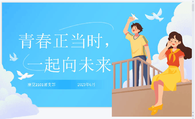 大学时期是人生中的一个重要阶段,从老师家长的约束到需要自己独立完成各项任务,从青春洋溢的校园即将走向形形色色的社会,为规划当下,展望未来,树立一个正确的人生观价值观,康复2101团支部于5月29日在7号楼103教室开展“青春正当时,一起向未来”主题团日活动。