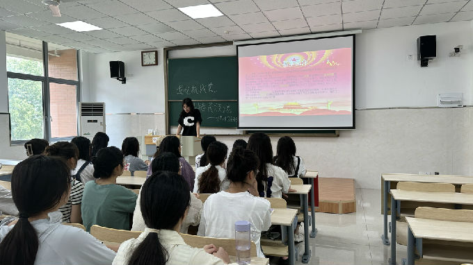 本次活动分为四项内容。活动伊始,主持人带领同学们一起观看红色人物故事,了解红色人物,弘扬他们身上所体现的抗战精神。紧接着,在宣讲活动中,主持人为大家详细介绍了抗战历史背景,声情并茂地讲述了革命先烈们为中华民族的独立和解放事业浴血奋战、英勇献身的悲壮征程,重温这段峥嵘岁月,弘扬伟大抗战精神,告诫我们要铭记历史,珍爱和平。宣讲完毕后,播放抗战系列电影,致敬抗战英雄。在观影过程中,学生静默沉思,感悟伟大的抗战精神。观影结束后,同学们内心久久不能平静,纷纷表示要坚定理想信念,增强行动自觉,始终坚持深学细悟笃行,以更加坚定的信念、务实的作风、苦干的精神投身到学习工作中去,积极为推动社会发展贡献力量。最后,团支书对本次活动进行总结。