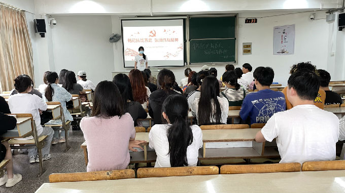 活动分为三个部分,分别是:铭记历史,弘扬精神,开创未来。活动伊始,主持人以习近平总书记的讲话导入,带领同学们回顾了抗战历史,并着重讲述了杨靖宇、左权、张自忠等殉国将军的英雄事迹。随后,同学们学习了什么是抗战精神,以及抗战精神的重要意义。抗战精神是中国军民和中华儿女在反击日本侵略者的过程中决心、意志、理想、信念、道德、情感的升华和结晶。它坚挺起中华民族的脊骨,增强了中华民族的凝聚力、战斗力和生命力,有效地支持推动抗日战争的最后胜利。紧接着,就如何运用抗战精神开创未来,同学们进行了讨论,分享了自己的想法与见解。同时,主持人拓展了习近平总书记同团中央新一届领导班子成员集体谈话时的重要讲话,激励和鼓舞海内外中华儿女团结一致紧跟党走、全力以赴续写荣光的动员令,要勇担新时代新征程的使命任务,在实现第二个百年奋斗目标的征途中绽放绚烂的青春之花。最后,团支书强调了青年人有理想、敢担当、能吃苦、肯奋斗,中国青年才会有力量,党和国家事业发展才能充满希望。至此,会议圆满结束。