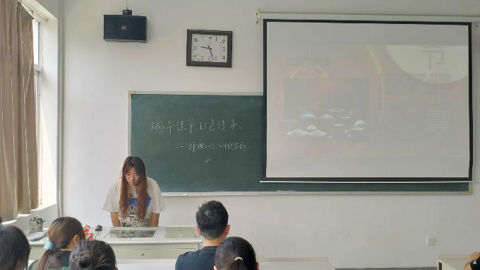 活动伊始,团支书以端午节的风俗习惯作为导入,吸引了同学们的注意力,以提问的形式增强同学们的参与度。接着,通过介绍端午节的背景和屈原的故事,同学们对端午节的历史、习俗和传说有了更深入的了解,坚定学习中华民族优秀传统文化,弘扬红色精神的信念。一段精彩的视频让同学们感受到了淳朴的乡俗文化和以爱国主义为核心的爱国主义精神。最后,主持人倡导同学们增强文化自信,传扬优秀传统文化和民俗,让青年的爱国精神燃烧在当今时代,并给予最真诚的节日祝福。
