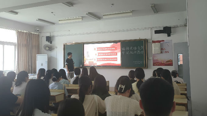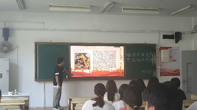活动伊始,团支书向全体成员介绍了本次团日活动的主要内容,主要分为三个板块:感受红色经典抗战精神、回顾革命先烈们的故事、传承和弘扬红色抗战精神。团支书先向大家阐述了抗战精神的概要,抗战精神主要分为:天下兴亡,匹夫有责的爱国情怀;不畏强暴,血战到底的英雄气概;视死如归,宁死不屈的民族气节;百折不挠,坚忍不拔的必胜信念。全体成员从浅层了解了抗战精神的内涵。随后,团支书带领全体成员缅怀先烈,走进革命英雄们的世界,让英烈精神薪火相传。最后,团支书播放了革命先烈为国家贡献热血的影视资料,全体成员形成了牢不可破、忠贞不渝的爱国情感,克服了崇洋媚外的自卑心理,坚定了爱国信念。