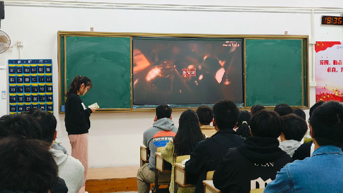活动伊始,团支书以“五四觉醒之摆脱冷气向上走”一视频引入话题,引发同学们思考青年与国家之间的关系。随后团支书围绕本次活动的主题,从”青年如司南”和“青年如浪潮”两方面展开叙述。在黄文秀、陈祥榕、张雨霏等榜样的故事中,同学们体会到了青年的梦想与国家的未来息息相关。新时代的青年应该树立远大的理想,将个人的梦想融入到国家的发展中,从而在实现自我价值的同时,为国家的繁荣富强贡献力量。最后以《人民日报》的一段寄语总结:青春无边,奋斗以成。新时代新征程,广大青年用脚步丈量祖国大地,用眼睛发现中国精神,用耳朵倾听人民呼声,用内心感应时代脉搏,把对祖国血浓于水、与人民同呼吸共命运的情感贯穿学业全过程、融汇在事追求中,就一定能够担当起党和人民赋予的历史重任吧,践行“请党放心,强国有我”的铿锵誓言,谱写新时代的青春之歌。