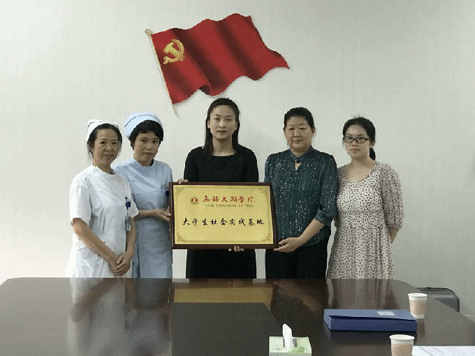 6月5日,无锡太湖学院护理学院17级一班“心下乡”社会实践服务团队、护理学院书记王凤琴、护理学院分团委书记马晓星、护理学院17级辅导员马莉,荣巷社区卫生服务中心倪代文主任等一行相约荣巷社区服务中心,就建立校外社会实践基地的相关事宜进行了洽谈,并于当天中午在滨湖区荣巷社区服务中心进行了签约仪式。
