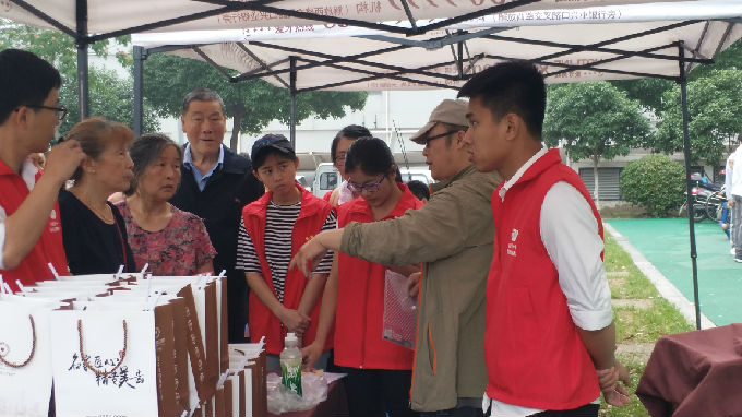 我们团队成员也去做了此次活动的志愿者,穿上红色的背心,非常的有模有样。他们主要负责村民们的签到和小礼品的分发,也负责此次活动的秩序。她们非常用心的投入,耐心的回答老人问题,积极调动气氛。她们说有一个阿姨还跟她们说:“你们是无锡太湖学院的学生吧,辛苦你们了,你们很棒呀!”听了村民的话,感受到社区团结友善的氛围,我们感到非常的高兴,觉的所做的一切都非常的有价值。