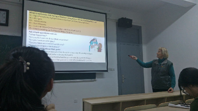 2019年4月16日下午18点,护理学院特邀外教Marianatha老师在5号楼211教室举办了护理学院英语角活动,主要针对大一、大二学生,旨在更好地激发同学们对学习英语的兴趣,提高英语表达能力和应用能力。