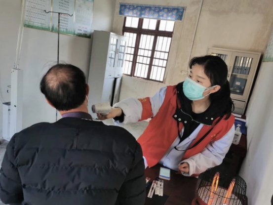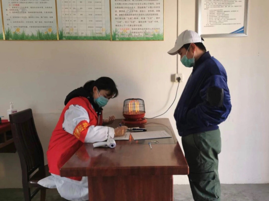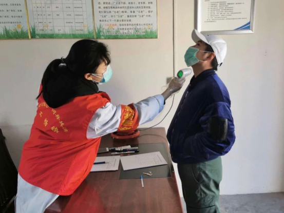 在村干部口中得知本村外出务工人员需要测量7日以上体温,而这时却没有专业人员,张晶义无反顾的来到幸福村医疗室,提前开始了她的“社会实践”。体温测量需要频繁的接触陌生人,当我们担心的询问她时,只戴着口罩和一次性手套的张晶笑着说:“面对疫情,总有人要站在最前面,我是年轻人,我不能让我的祖国、我的亲人为我挡住所有的困难”。
