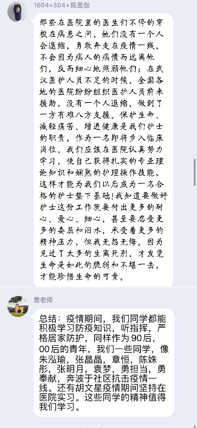 此次疫情共4.2万余支援湖北的医护人员中,有1.2万多名90后,他们奋战在疫情防控的第一线,他们主动请缨,冲上前线、勇挑重担,积极为防控工作做贡献。作为90后的我们深感自豪,同时也作为一名护理专业的学生,更加坚定了为人民服务的信念,更应以援鄂医护人员为榜样,认真学习,获得扎实的专业知识和娴熟的护理技能,为今后的临床工作奠定坚实的基础,这也是成为一名优秀的护理人员的基本要求。