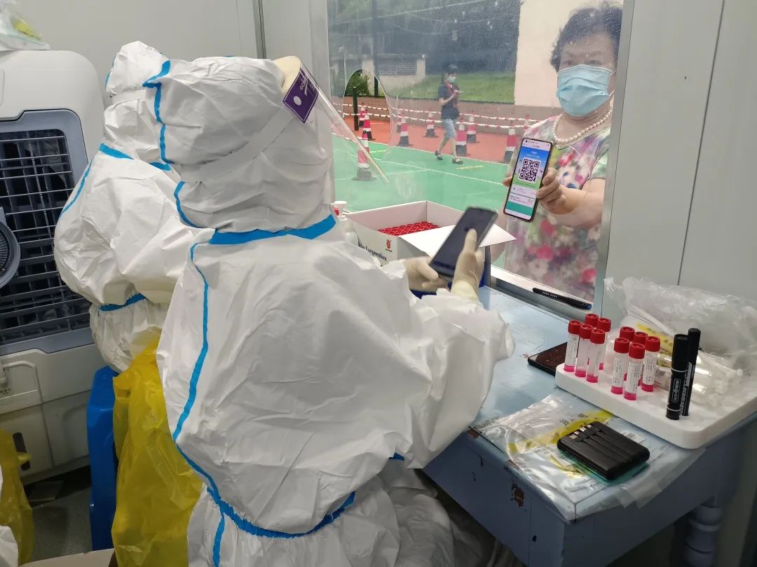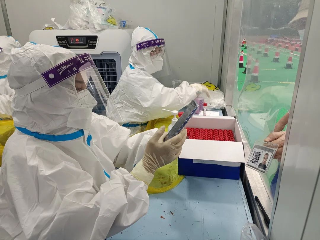 我清晰的记得7月3日17时,万科东郡成为高风险地区,开始封控,业主群内在召集居民志愿者,我第一时间就报了名,作为一名护理专业的学生,我认为我应该义无反顾。我当上了76栋的楼长,开始分发抗原、物资,在群里解答居民的疑惑。在核酸小屋里,我成为信息员、封箱员。