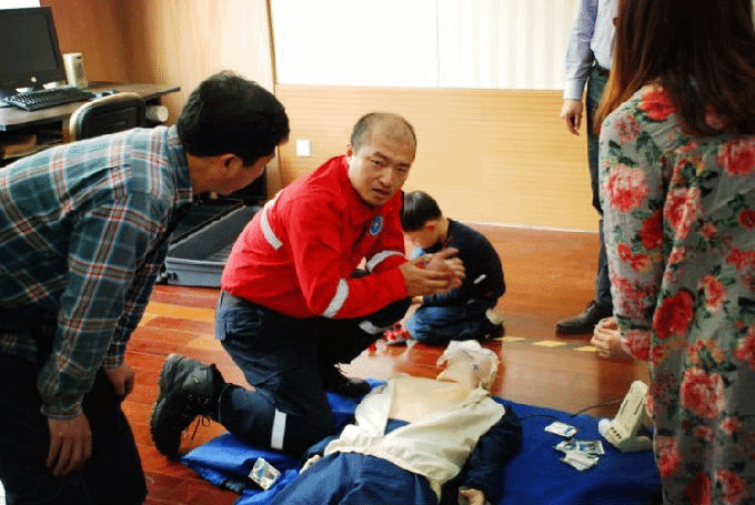 培训分急救理论和实践操作两部分。在培训过程中,无锡优恩培训中心的鲨鱼队长为大家生动讲解了救护的基本知识,包括心肺脑复苏、排除气道异物以及止血加压包扎等内容。
