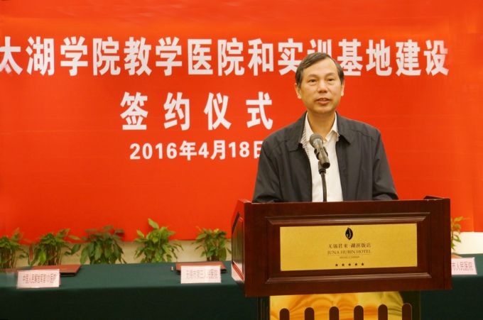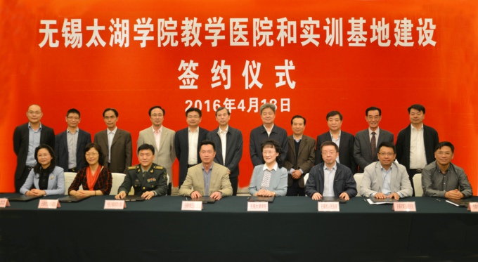 市人大常委会副主任曹锡荣,解放军101医院院长张建东、市政府副秘书长吴建昌、市卫计委副主任韩晓枫、市教育局副局长符菊成出席并作了热情洋溢的讲话。太湖学院党委书记金秋萍,徐从才校长,校领导何宏金、王心如、丁涛、陈鹏飞、陈晓东出席签约仪式,王心如副校长主持会议。