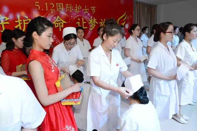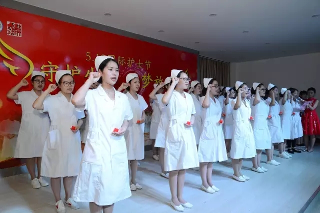 护理学院教授于淑梅主持绶帽仪式,护理学院教师们为优秀护生代表戴上圣洁的燕尾帽,400名护生在南丁格尔像前庄严地许下了自己的誓言。优秀学生代表发言表示:所有护理学院学生誓为护理事业奉献终身。