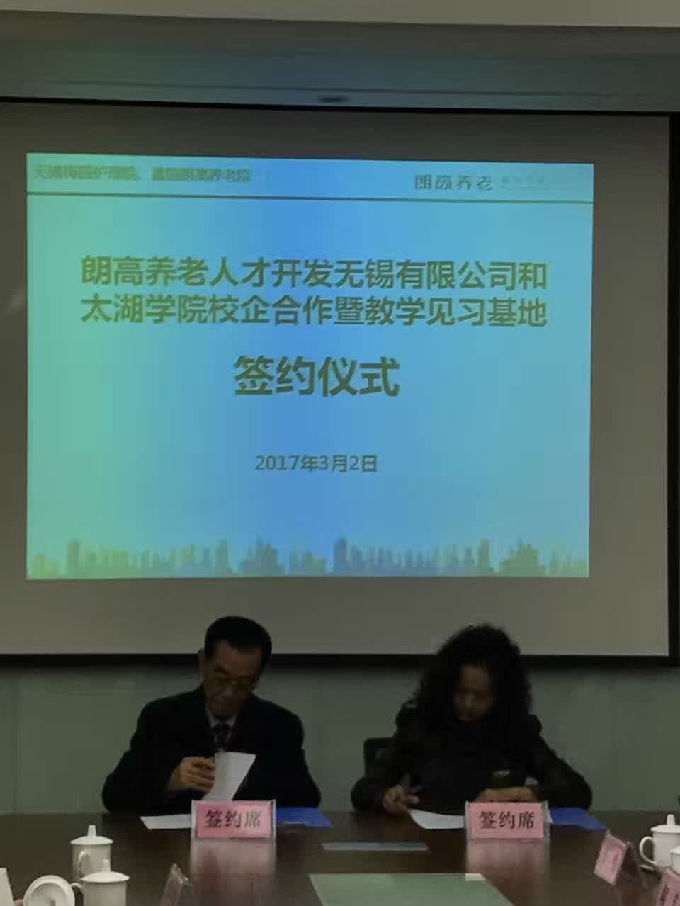 3月2日上午八点,由无锡太湖学院副校长、护理学院院长王心如教授带领护理学院、物联网工程学院、科技处一行十人前往无锡朗高养老股份有限公司,就校企合作暨教学见习基地举行签约仪式。