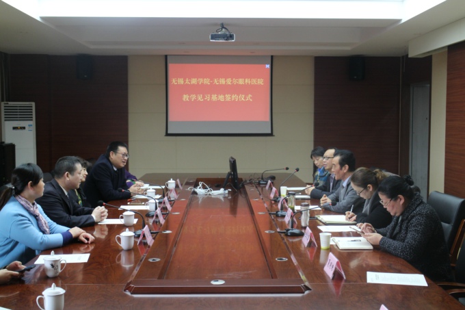 签约前,副校长、护理学院院长王心如与护理学院、教务处、招生就业处有关人员,与爱尔集团江沪区营销总监姜晓燕、无锡爱尔眼科CEO彭湃等一行5人进行了座谈交流,就校企合作事项达成共识。双方秉承“校院共建、优势互补、资源共享、发展双赢”的原则,签订了校企合作、共建教学见习基地协议。双方还就开办眼科护理专业方向进行了磋商。