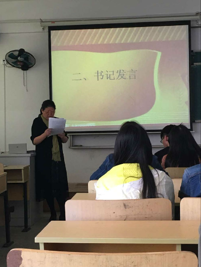 下午一点,参加会议的成员们都陆续到齐。主持人宣布会议开始。本次会议共三项议程。首先,由主持人司超带领我们一起聆听了团歌,在激昂的乐曲中同学们一个个若有所思。紧接着,由我院王凤琴书记发表讲话。