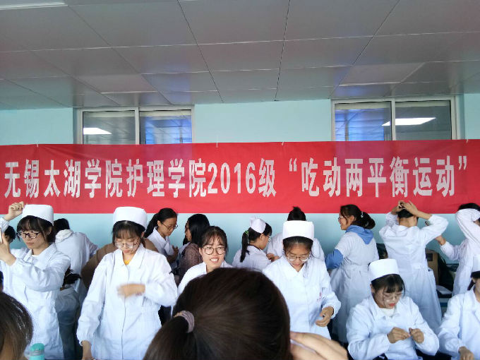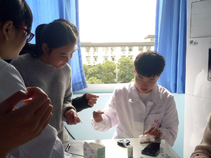 预防慢性病,饮食和运动是关键。10月15日上午,通过护理16级辅导员詹雪丽老师的支持,护理16级全体学生在无锡市解放军101医院内分泌科护士长赵恒霞老师的带领下举办了“吃动两平衡”活动。所有同学在5号楼506教室进行空腹测血糖,并食用合理搭配的膳食,进食时间为20分钟。