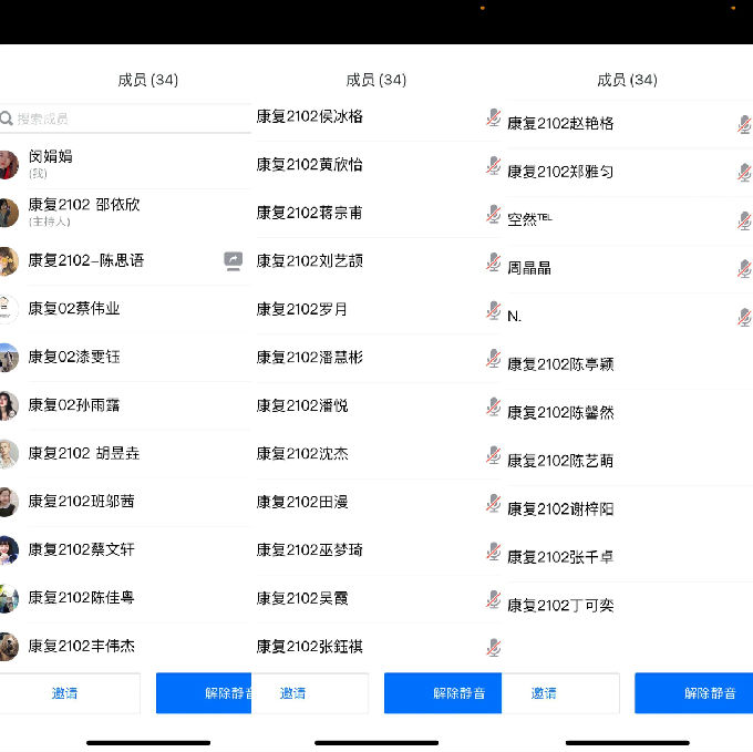 为庆祝“5.12”国际护士节,康复2102班全体同学于5月4日顺利开展了“健康与护理学院评选2021年度优秀学生、优秀学生干部”线上主题班会,会议由班长邵依欣主持,辅导员闵娟娟、康复2102班全体同学参会。