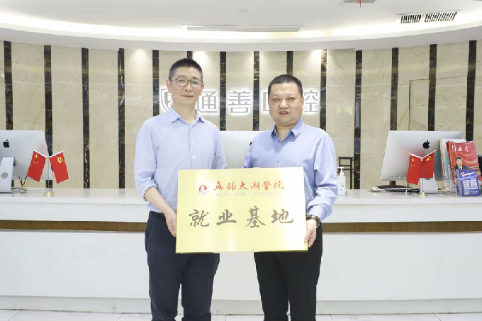 2022年6月8日下午,无锡太湖学院、通善口腔医院校企合作就业基地签约仪式在通善学院会议室隆重召开,包括无锡太湖学院党委副书记丁涛、无锡太湖学院党委委员、无锡太湖学院健康与护理学院副院长周鸣鸣、无锡太湖学院健康与护理学院党总支副书记胡宇、无锡太湖学院健康与护理学院院长助理宋邵征、无锡太湖学院健康与护理学院学工秘书马晓星、通善口腔董事长王杏松、通善口腔人事院长季湫幔、通善口腔运营院长刘鹏、通善口腔人事部长顾牧、通善口腔市场部长朱云杰等在内的相关领导共同出席了本次仪式。