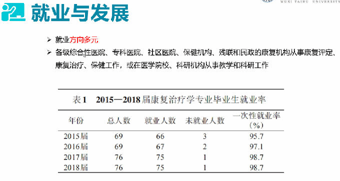 接着,邓老师向新生们展示了无锡太湖学院的人才培养方案,康复专业设置了18门核心专业课程,总学分为166学分,总学时2461学时,希望大家能够端正学习态度,努力认真,厚德博学,提高自我修养和综合素质能力。