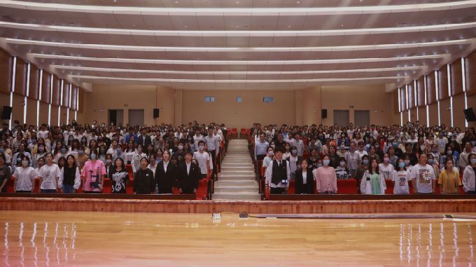 在热烈的掌声中,健康与护理学院2022级新生入学典礼正式开始,全体人员肃立,奏唱国歌。