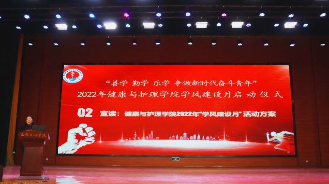 百年大计,教育为本。党的二十大再一次对教育事业作出重大战略部署,强调深入实施科教兴国战略、人才强国战略,办好人民满意的教育。为加强我院学风建设,11月3日下午13点在工科大楼报告厅顺利开展健康与护理学院2022-2023学年学风建设月启动仪式暨特聘专家第一课活动。