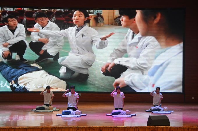 至此5个项目比赛全部结束,在令人印象深刻的《心肺复苏之歌》之后,由潘生强老师与杨晨晨老师上台为获奖学生颁奖。