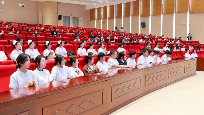 此次参会人员有无锡太湖学院校党委委员、健康与护理学院副院长周鸣鸣、健康与护理学院党总支副书记胡宇、院长助理宋绍征、团总支书记马晓星、教工党支部书记詹雪丽、学生党支部书记陈春晓、各年级辅导员和教师代表,以及健康与护理学院全体学生参会。
