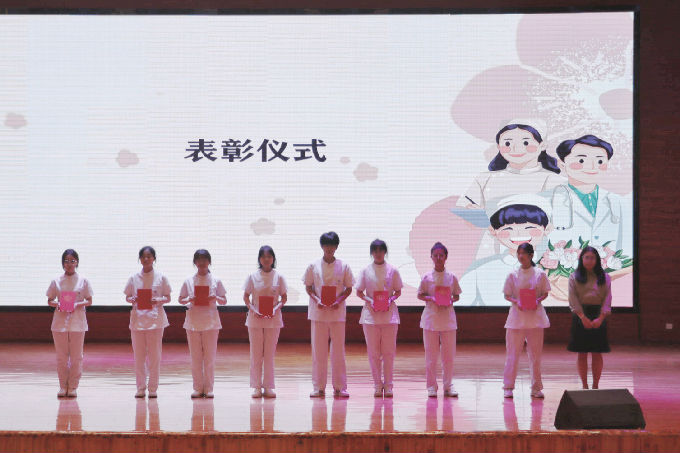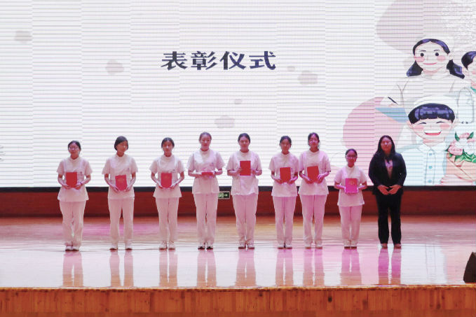 随后,由健康与护理学院党总支副书记胡宇宣读本次大会的表彰决定,此次受到表彰的人员有:优秀教师王燕君、孟雅琴、周云、潘生强;优秀辅导员陈春晓;最美医护实习天使、杰出组织工作者、优秀学生干部、先进医护学习标兵等进行了表彰。
