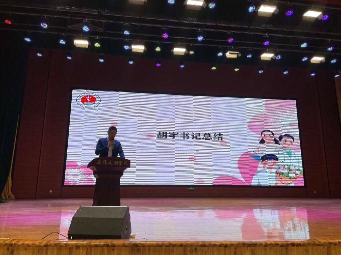 最后,胡宇书记对本次大会进行总结,他强调现今护理事业已变得愈发重要,社会对我们护生的要求也越发严格,希望大家能够以表彰的师生们为榜样,在未来的道路上奋勇向前,坚守己心,作为未来的医护工作者和正奋楫争先的医护生,必将不忘初心、牢记使命,弘扬并笃行南丁格尔精神,传承护理文化。