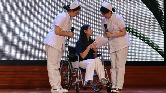 在舞台上,选手们沉浸于角色和表演之中,剧情立足校园、家庭和社会生活。他们用至真至诚的情感、幽默诙谐的表演、跌宕起伏的剧情,将健康宣教、人文关怀、疫情防控等融入其中,仿佛让人身临其境,赢得了台下观众阵阵掌声。