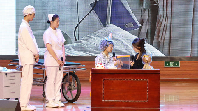 随后,主持人介绍比赛规则,参赛队伍分为八组,此次比赛以自命题形式进行情景展现,情景剧为选手自编自导自演。比赛由评审现场打分,最终得分是由现场观众投票占比40%,评委打分占比60%。